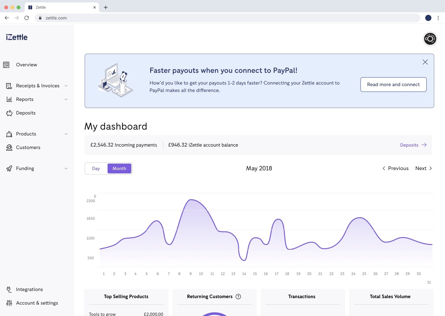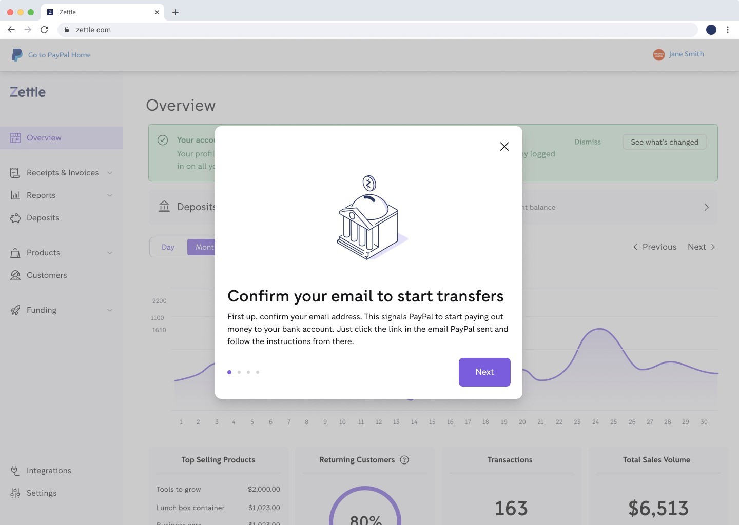 The main challenge was to convert existing Zettle users by creating a simple wizard that would sell the PayPal account and products to them, and make the user understand what changes they'd experience after migrating their account to a PayPal account.